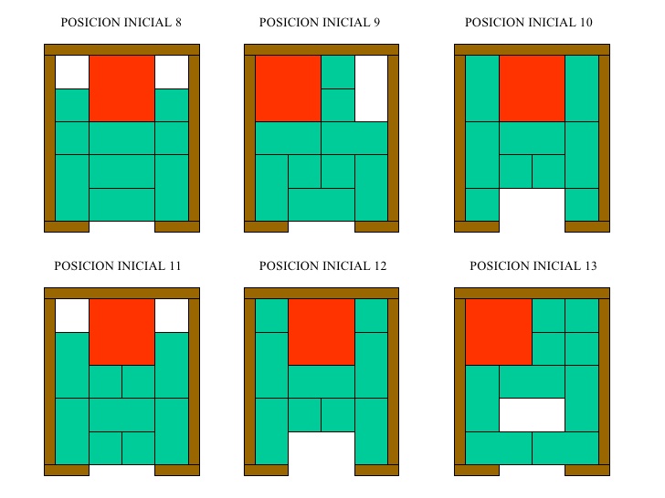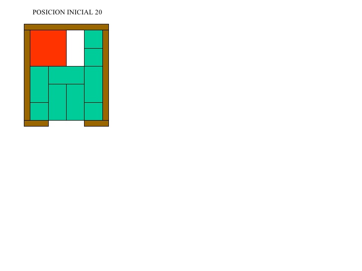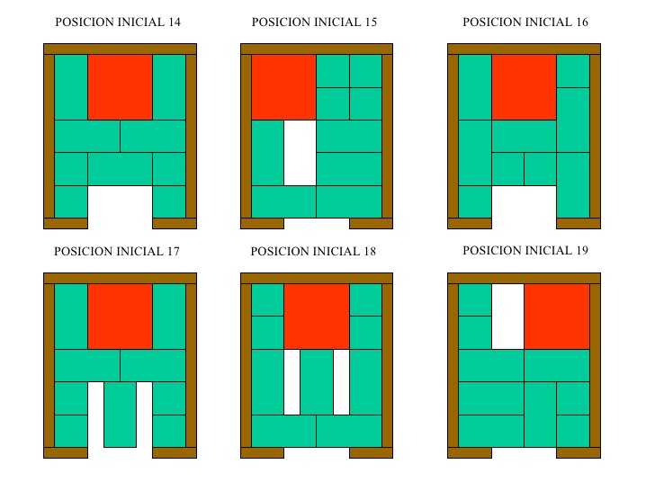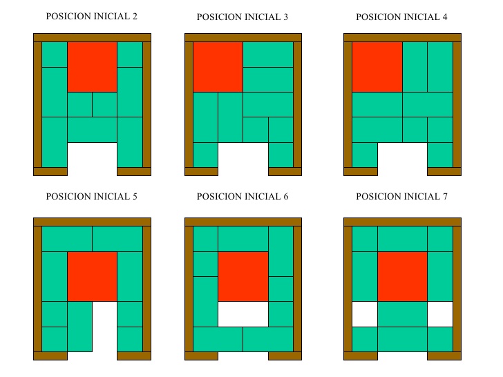 Se parte en la posición inicial, luego se van desplazando las piezas, usando para ello el espacio libre que queda, las piezas no deben ser sacadas del marco ni girarlas.